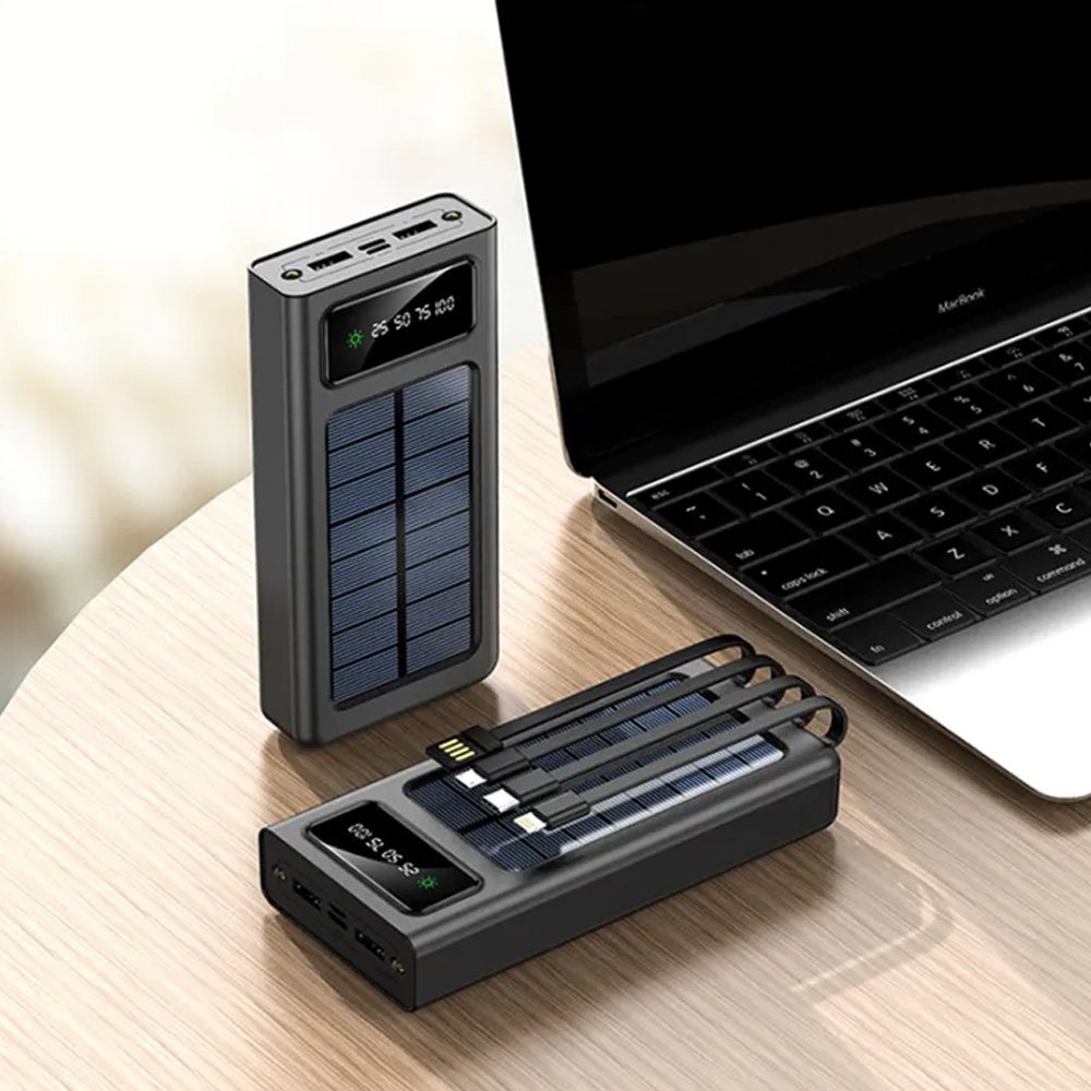 باور بانك بالطاقة الشمسية هو الحل الأمثل لشحن أجهزتك الإلكترونية في أي وقت ومكان، خصوصًا أثناء التنقل أو الأنشطة الخارجية. يتميز هذا الجهاز بقدرته على الشحن عبر الطاقة الشمسية، مما يجعله صديقًا للبيئة وموفرًا للطاقة. بفضل سعته الكبيرة التي تصل إلى 50000mAh، يمكنك شحن هواتفك وأجهزتك المتعددة بسهولة. يحتوي على منافذ USB متعددة لتوفير شحن متزامن لأكثر من جهاز، بالإضافة إلى مصباح LED مدمج للإضاءة في الأماكن المظلمة. تصميمه المتين والمقاوم للماء والغبار يجعله مناسبًا للاستخدام في مختلف الظروف البيئية.