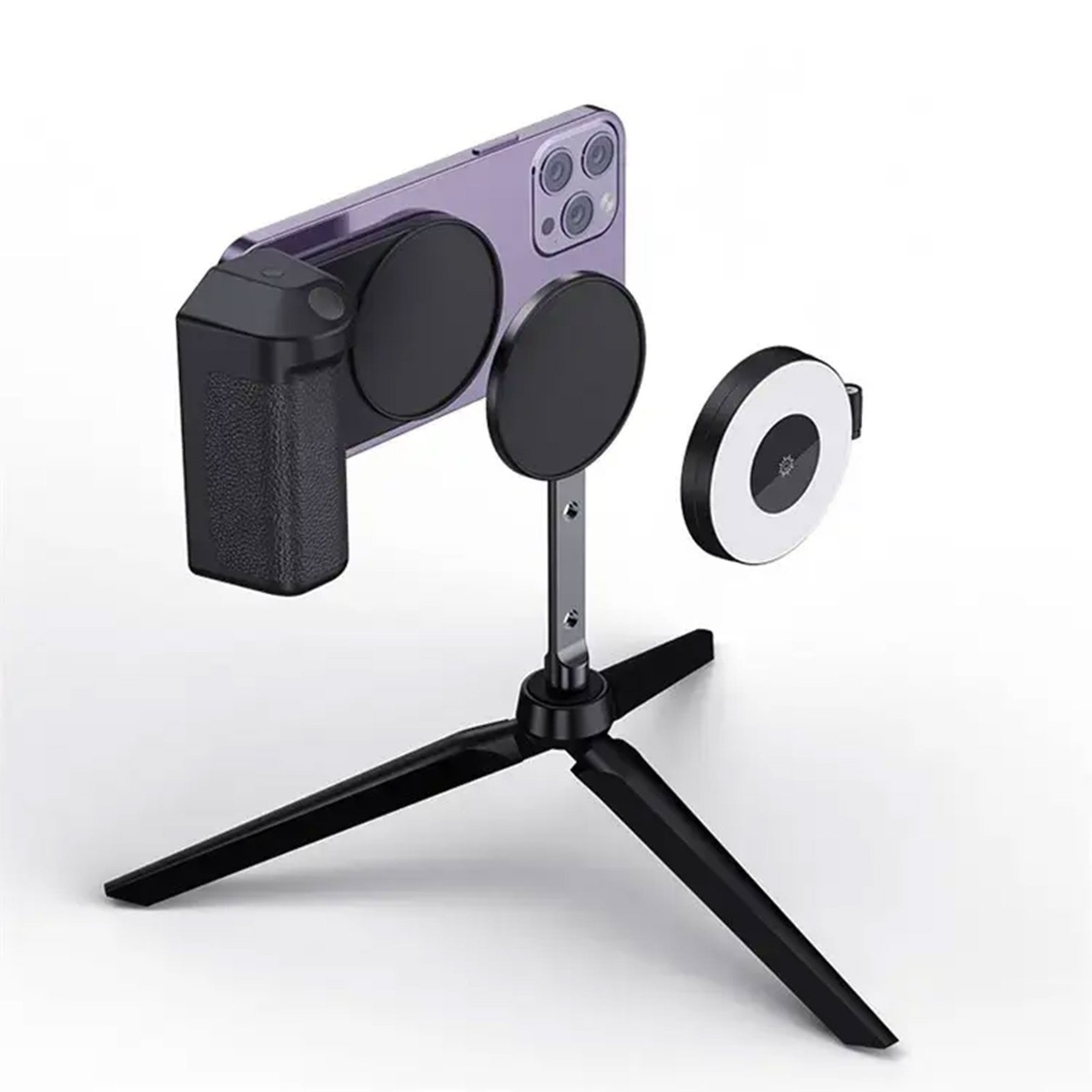- ثبات قوي بفضل المغناطيس: يلتصق بجهازك الذكي بسهولة باستخدام مغناطيس داخلي قوي، أو يمكن استخدامه مع قاعدة مغناطيسية أو حامل ثلاثي للتصوير الحر.